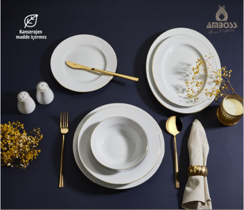 HARE PORSELEN YEMEK TAKIMI GOLD 53 PARÇA 12 KİŞİLİK